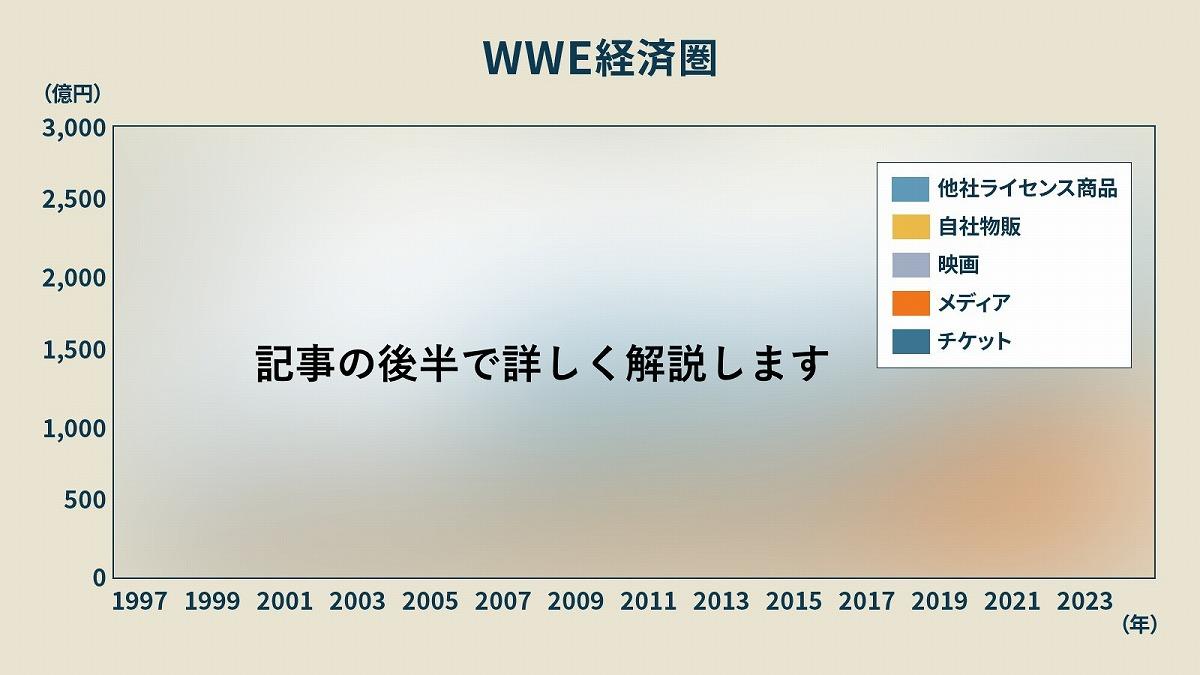 総合格闘技・ボクシングなどを含めた、すべてのコンバットスポーツの規模で見ても1.5兆円弱(2025年時点で95億ドル)、プロレスだけを切り出せば30億ドル弱といったところだろう。このように、桁違いに小さいプロレス市場において、たった1団体で過半のシェアをとり、これほどの規模の団体となったWWEが今回のメインテーマだ。