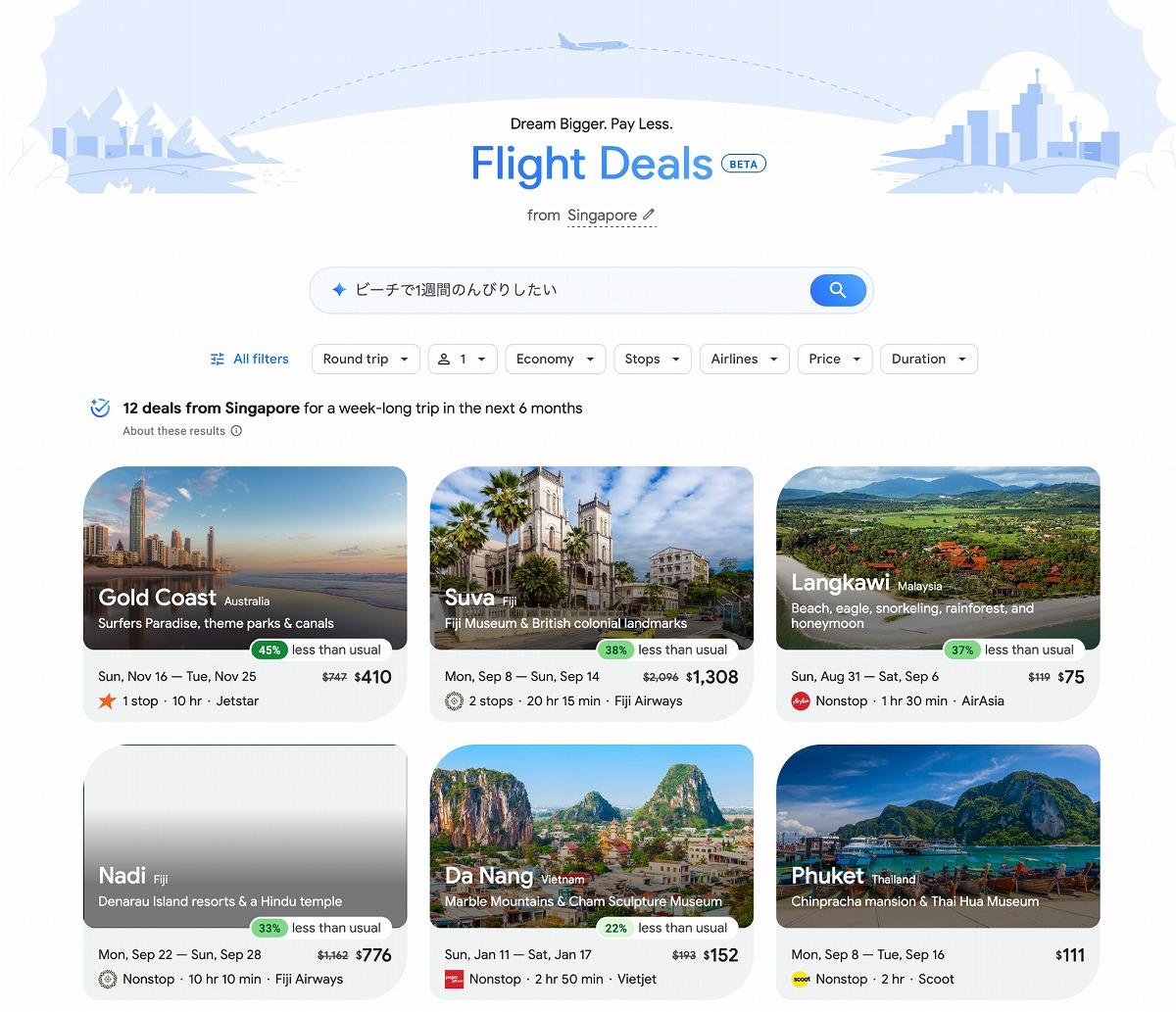 タブを何十個も開く時代は、間もなく終わるかもしれない。まずは、VPN(米国、カナダ、インド設定)を使えば日本からでも利用できるグーグルのFlight Deals、また日本でもサービスが開始されたスカイスキャナーのスマートサーチを使って、AI検索の可能性を模索してみてはどうだろうか。