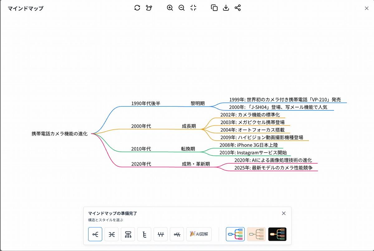 出力結果のカスタマイズ性の高さも特徴だ。スライドやWebページのテキストを編集したり、画像を差し替えたりできるほか、マインドマップも構造やデザインを変更できる。