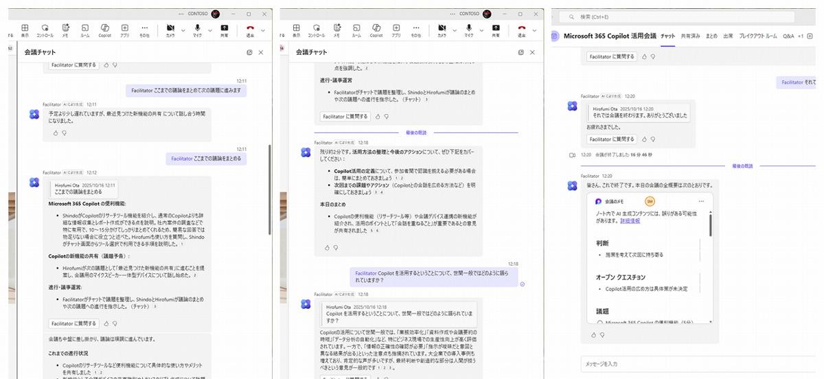 そこでCopilotは、Teamsで利用できる「ファシリテーターエージェント」を新たに提供しました。Teamsの中でシームレスに動作し利用できるエージェントは、これまでも利用してきたMicrosoft 365に組み込まれているからこその強みに感じます。