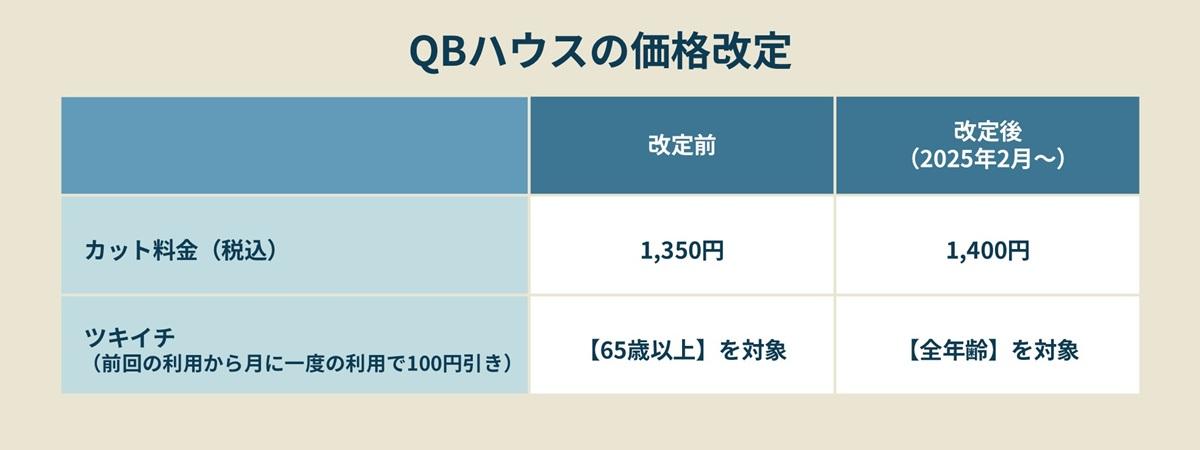 1,000円カットの草分け「QBハウス」は、1996年に「QB HOUSE 神田美土代店」を開業。「10分1,000円のヘアカットのみ」「予約を取らない」「雑誌を置かない」「シャンプーをしない」など、当時では画期的なビジネスモデルを一から作り上げ、業界に新風を起こした。あらゆるムダをそぎ落としたことで、従来の理美容店の約3分の1までコストを抑え、破格のサービスを実現したという。QBハウスを運営するキュービーネットホールディングスの2025年6月期 決算説明会資料によれば、店舗数は国内外で724店舗に拡大。人財やDXなどへの投資を理由に値上げを重ね、2025年2月1日の価格改定では1,400円に上昇した。代わりに、前回から1カ月以内の利用で100円引きとなる「ツキイチ」の対象を従来の65歳以上から「全年齢」に広げ、客離れを防ぎたい考えだ。
