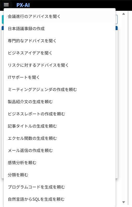 利用者から「生成AIをどう使えばいいのか?」という質問があり、プロンプトの概念を解説しながら入力方法をまとめたプロンプト集を作ったこともあります。現在ではPX-AIの画面からサンプルのプロンプトを簡単にコピー&ペーストできるようにするなど、誰にでも使いやすくしています。すでに社内でおすすめプロンプトを共有しており、使い勝手をより良くするような展開を進めております。