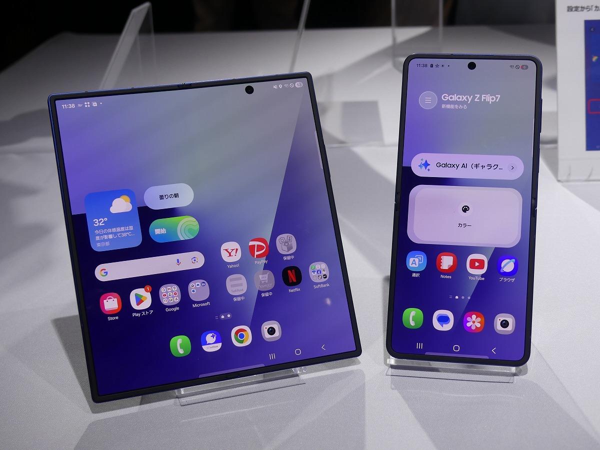 それに連なる最新端末が、折りたたみスマホ「Galaxy Z Fold7」と「Galaxy Z Flip7」だ。特にZ Fold7は、Z Foldシリーズ史上最薄最軽量を実現し、サムスン電子の技術力の高さを見せつけた。厚さは折りたたんだ状態でも8.9ミリで、折りたたまない一般のスマホと変わらない。