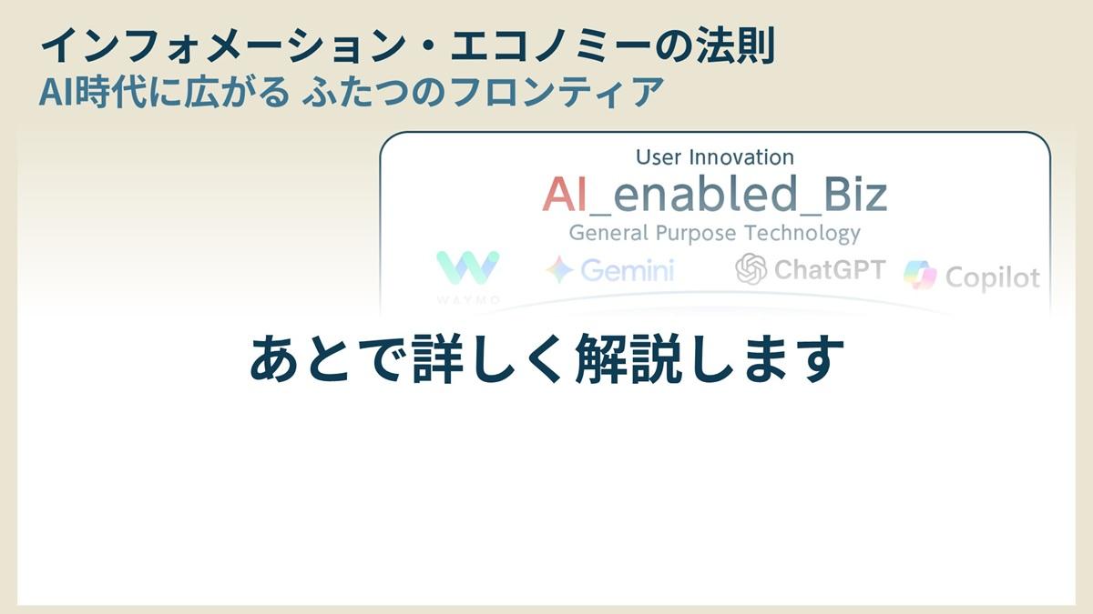 企業という組織は分業とコミュニケーションの束だ。担当者と取引先とのやり取りなど社内の業務情報を案件ごとにAIに学習させることで、関係者間(チーム内)の情報共有や人事異動に伴う引き継ぎの円滑化に有効活用する取り組みもある。濃淡はあれ、AIが身近な存在になったことは間違いないだろう。過去30年間のインフォメーション・エコノミーに鑑みると、この変化のスピードは大違いだ。そのため、これまで日本が苦戦してきたDX推進の起爆剤になるとの期待も出てきた。