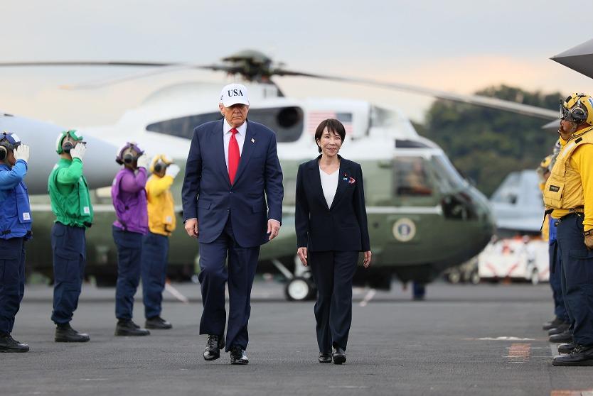 距離の近さをアピールする演出も巧みだった。高市氏は演説の筆頭に、会談直前まで2人だけでワールドシリーズのドジャーズの試合をテレビ観戦していたことを取り上げた。安倍氏同様、外国要人でも普通は乗れない大統領専用ヘリに同乗し、横須賀米軍基地で並び立って演説する姿は、身体の大きさが違うのに「対等な存在感」を印象づける画だ。