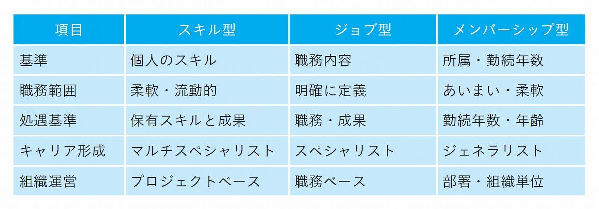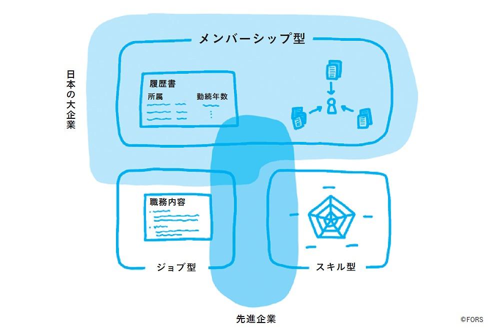 近年、技術革新のスピードが速くなり、仕事の内容が頻繁に変化するようになった。そのため、あいまいな所属を基準にするメンバーシップ型、または特定の職務に人材を固定するジョブ型よりも、柔軟に人材を配置できるスキル型人事制度が注目されている。