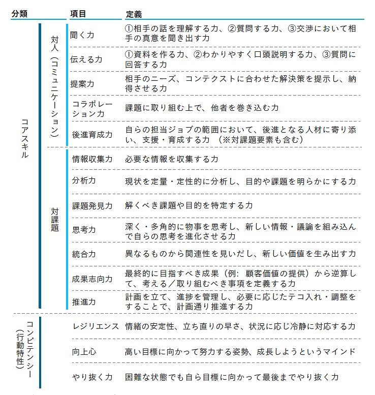 職種固有の知見および人間力については、Z社がこれまで運用してきた知見を整理することでスキル項目の定義と評価基準の定義ができた。