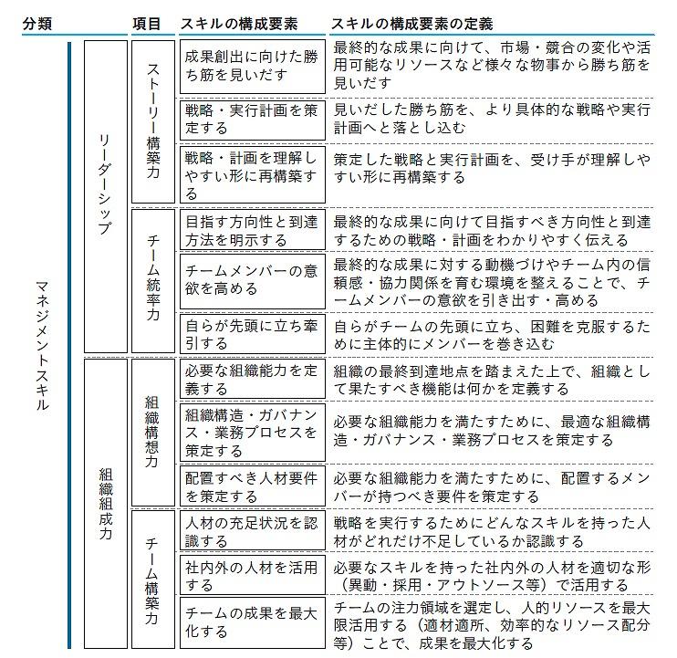 一方、マネジメントスキルの項目は図表5、6のように定義し、3段階で評価する。評価対象は「現在」自身がマネジメントする組織においてどの程度スキルを発揮できるかであって、「過去」の組織でのスキル発揮の程度は考慮しないことが肝要である。レベル1は十分にスキルを発揮できない/わからない、レベル2はおおむねスキルを発揮することができる、レベル3は常にスキルを発揮することができる、と定義した。