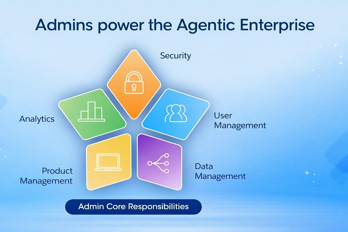Salesforceは管理者の責任範囲に、従来の「セキュリティ、ユーザー管理、データ管理、アナリティクス」に加え、新たに「プロダクトマネジメント」を追加しました。これによりSalesforce管理者は、システムの「保守者」であるという伝統的な認識から脱却し、プラットフォームのロードマップと投資対効果(ROI)を定義する「リーダー」としての役割を正式に担うことになります。