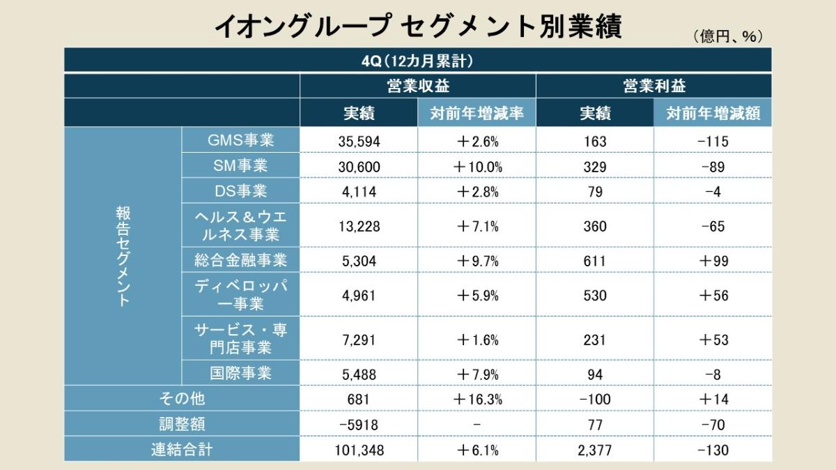 両社の親会社となるイオングループのセグメント別業績で見ても、ドラッグストアのヘルス&ウエルネス事業は売上で3番目、営業利益では金融事業、イオンモールなどのディベロッパー事業に次いで3番目の稼ぎ頭、すでにGMS事業、SM事業を抜く小売部門のトップ事業なのです。