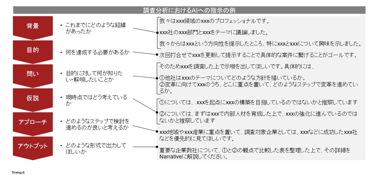このように、依頼内容を背景・目的・問い・仮説・アプローチ・アウトプットと整理するだけで、AIの回答の質は格段に上がります。