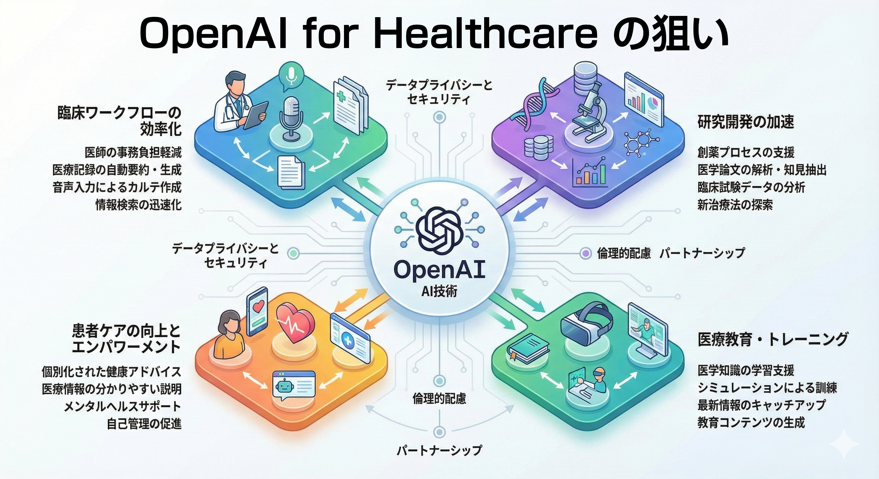 OpenAIは、「OpenAI for Healthcare」によって医療機関がAIの利点を享受しつつ、患者データの安全性とプライバシー保護を維持できるソリューションを提供することを目指している。
