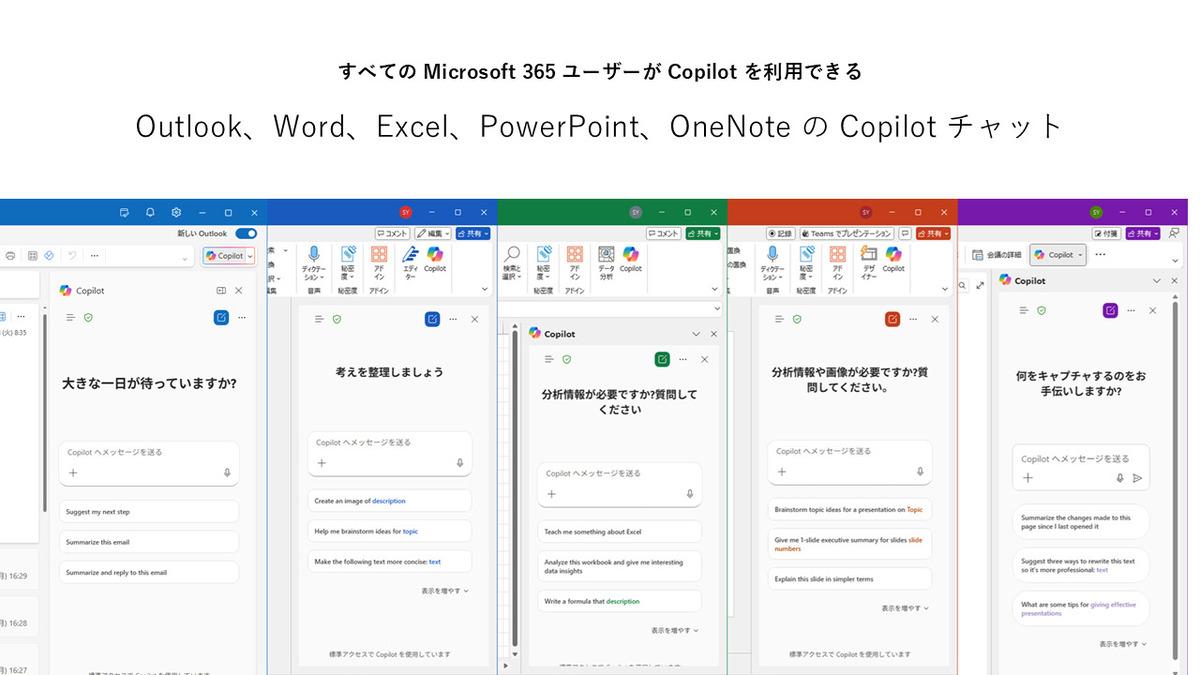 Microsoft 365ユーザーが利用できるCopilotが増えたのと同時に、これまでアプリで独自に実装されていたWordやExcel、PowerPointなどのCopilotとのチャット機能が、「Copilotチャット」として1つに統一されました。これによりアプリを切り替えても使い勝手が変わることがありません。また、今後注目されるエージェントがすべてのアプリ内のCopilotチャットで利用できるようになり、エージェントを本格展開するための土台としても機能します。さらには、最新のAIモデルへの対応スピードも上がるでしょう。