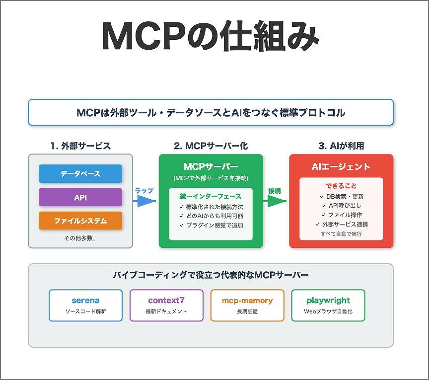 バイブコーディングで特に役立つMCPサーバを4つ紹介する。