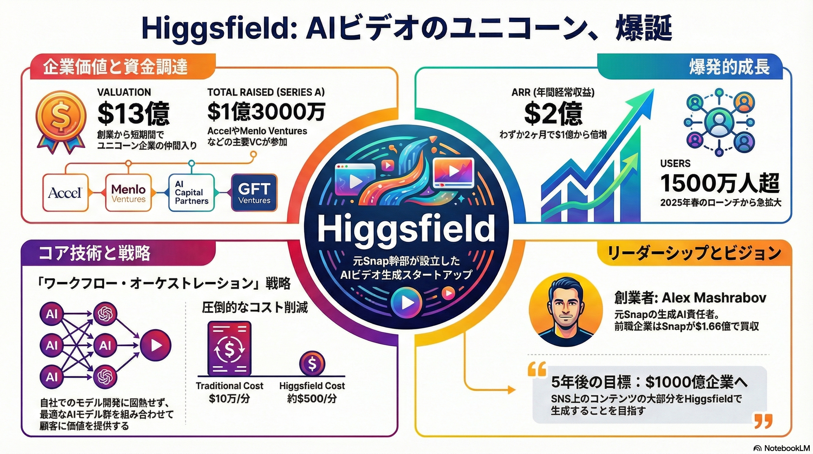 AI動画生成技術は短尺動画コンテンツの需要増加とともに注目を集めており、企業のプロモーションやクリエイターの制作活動での活用が広がっている。Higgsfieldの資金調達とユニコーン認定は、この分野が次の成長段階に入ったことを示す象徴的な出来事となっている