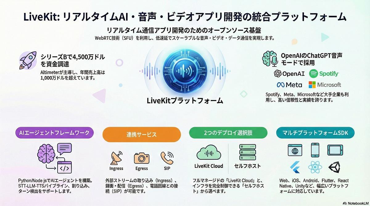 LiveKitの顧客はOpenAIだけでなく、xAI、Salesforce、Teslaなど多様な企業を含むとされ、AI音声インターフェースのインフラとして広がりを見せている点が特徴である。今後はリアルタイムAI通信の需要に応えつつ、エージェントフレームワークなど音声AIサービス開発のプラットフォーム全般へと事業を拡大する姿勢を示している。