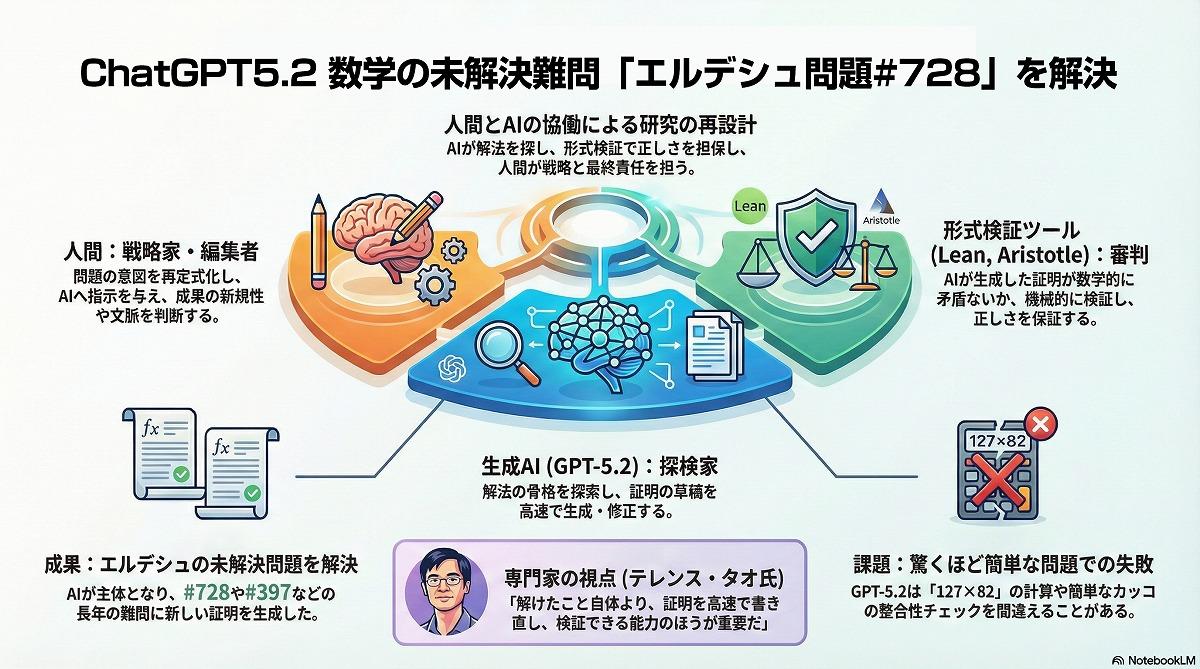 今回の成功の背景には、2025年12月に登場したGPT-5.2 Proの正確性の向上があり、従来のモデルで見られた「幻覚(ハルシネーション)」を回避しつつ、論理的な飛躍を自己申告する高度な推論能力が寄与したとされる。