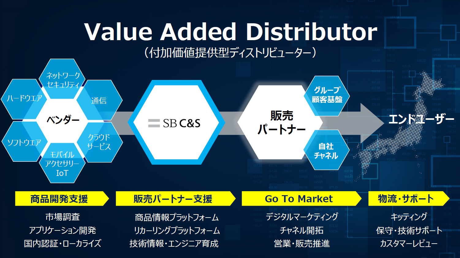 こうした課題意識の中で、私たちの「Value Added Distributor(付加価値提供型ディストリビューター)」としての存在意義を強化してきました。