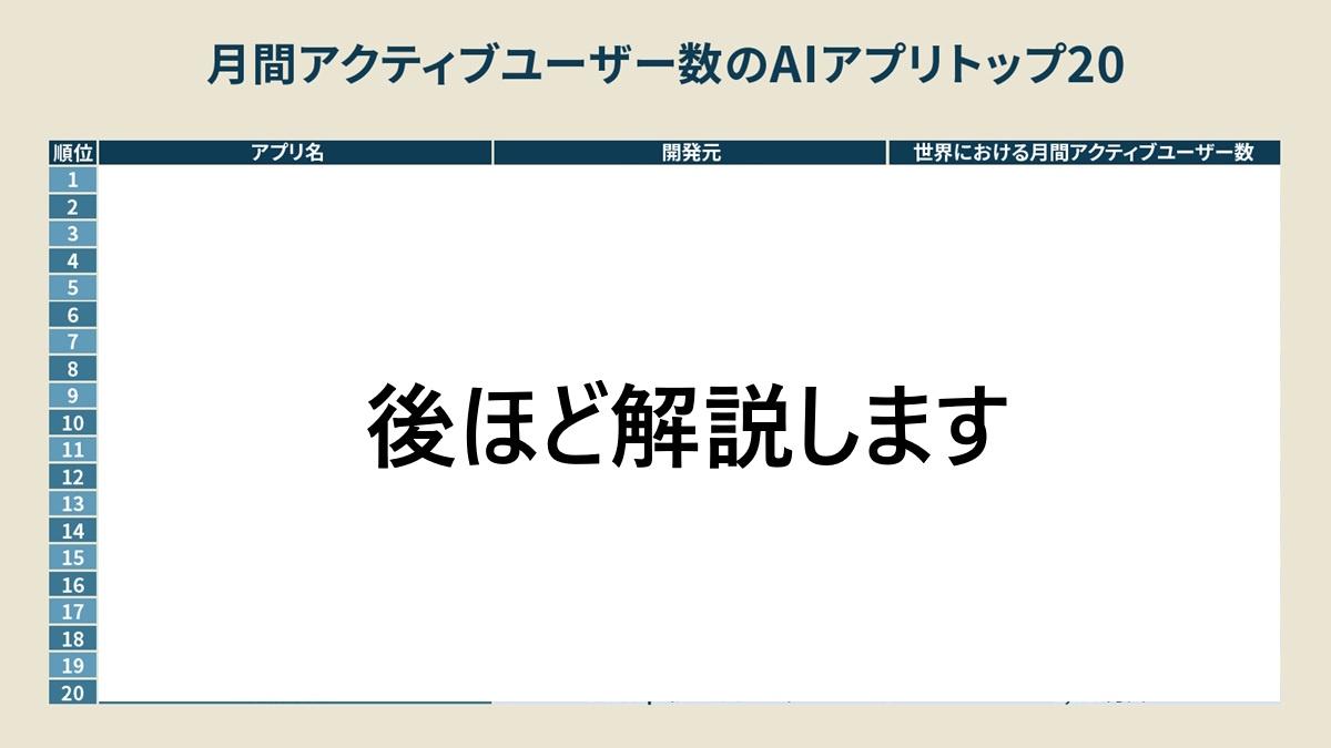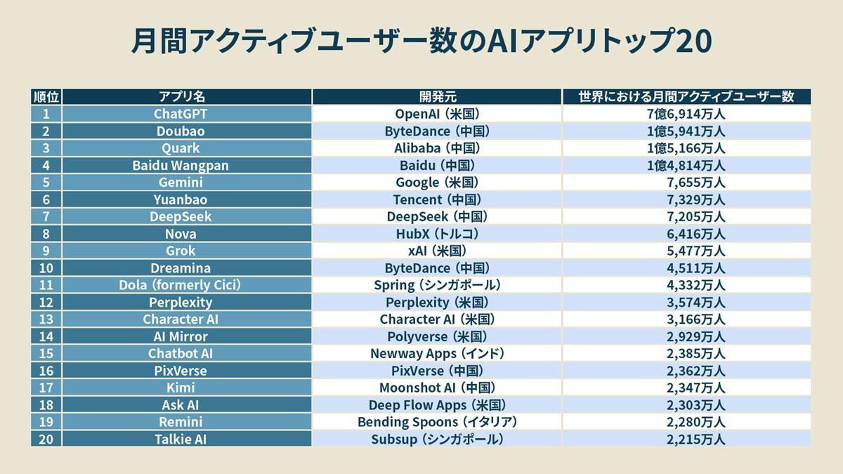 55兆円市場のAIアプリ、「人気ランキングトップ20」は?