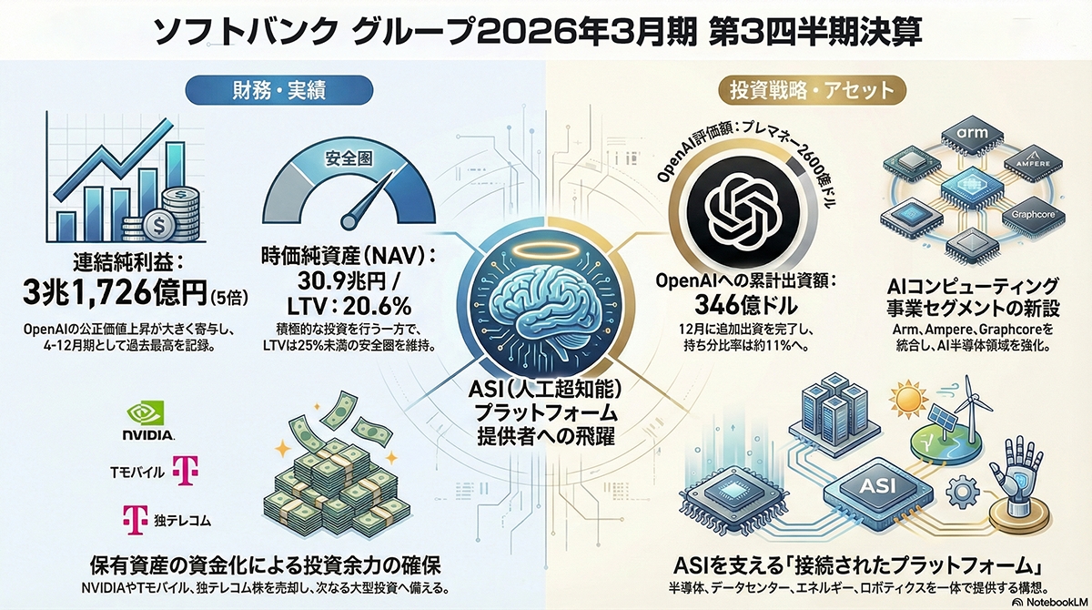 後藤CFOは決算説明会で、同社が目指す方向性について「ASI(人工超知能)時代のナンバーワン・プラットフォームプロバイダーになること」と強調した。OpenAIへの追加出資完了や、AI半導体メーカーのアンペア(Ampere Computing)の買収など、AIインフラからサービスまでを包括する「コネクテッド・プラットフォーム」の構築に向けた布石を着実に打っている。