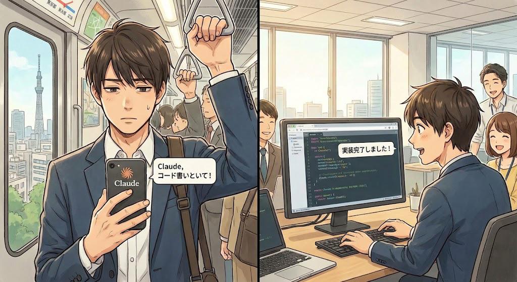 通勤中にclaudeに指示、出勤後に確認実装。エンジニアの役割はコードの記述から、AIが生成した成果物の監督へ