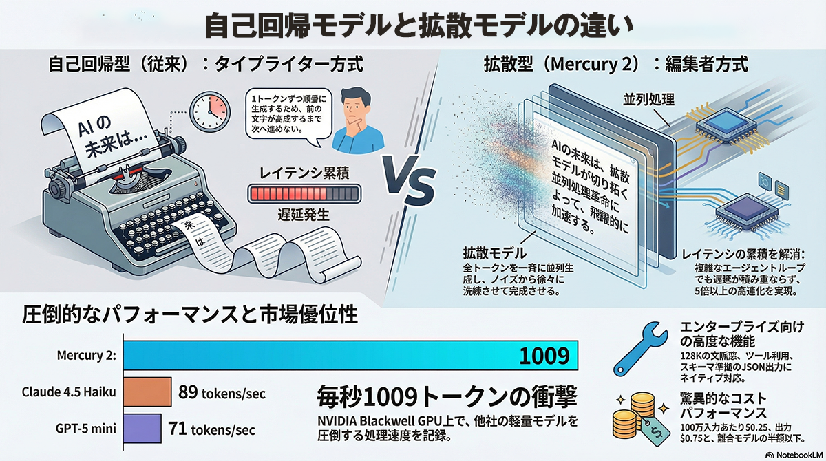 世界初の拡散モデル型の推論LLM「Mercury 2」とは?