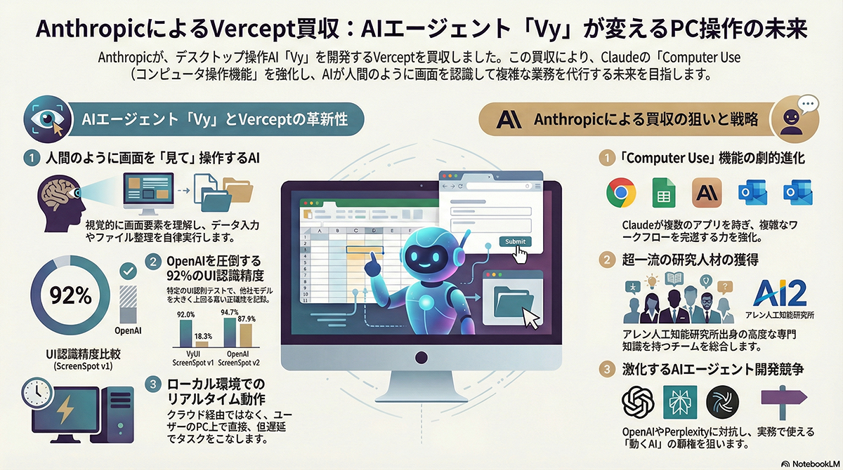 AnthropicがAIエージェントの「Vercept」を買収、ClaudeのPC操作機能を強化へ
