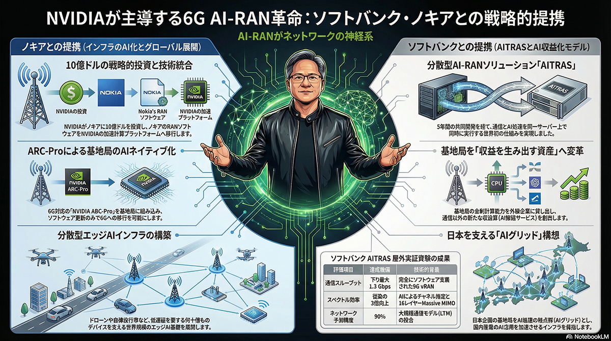NVIDIA、6G向けAIネットワーク「AI-RAN」構築でソフトバンクやノキアと連携