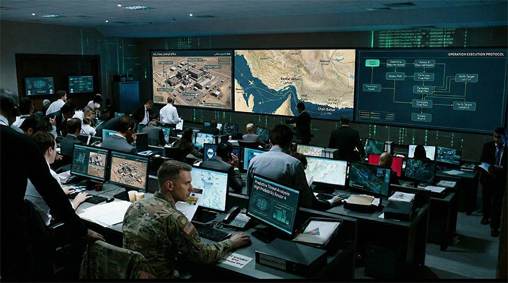 過去6カ月の行動履歴や警護チームのシフト、気象条件などを統合した時系列の予測モデリングを実施し、防空レーダーの死角と警護交代が重なる3分間の隙を特定することで、ターゲットの位置の誤差半径を500メートル以内にまで絞り込んだ。指揮官の意思決定に必要な作戦立案シミュレーション(ウォーゲーミング)も8分で処理され、極超音速の作戦遂行が可能となった。報道によると高精度弾薬と長距離ミサイルを備えたイスラエル軍機が、ハメネイ氏と指導者らがいた別々の場所にある3つの建物を同時に攻撃し、わずか11分23秒でこの作戦は遂行された。