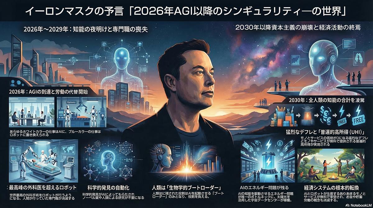 イーロン・マスクが予言する、2026年AGI後に人類を待ち受ける「悲惨すぎる」運命