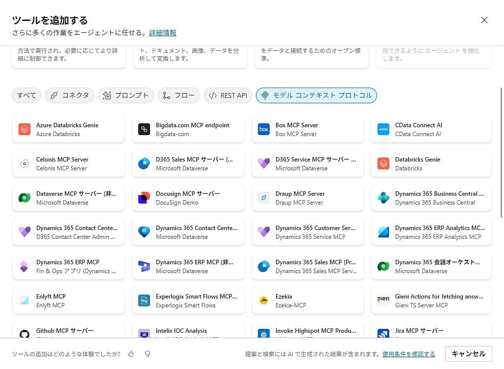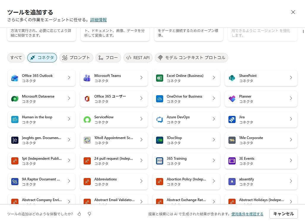 Copilot Studioの連携には、従来の「コネクタ」(図1)を使う方法があります。Power Platformに慣れている人ならおなじみの仕組みで、Microsoft 365内外のサービスと画面操作でつなげやすいのが特徴です。