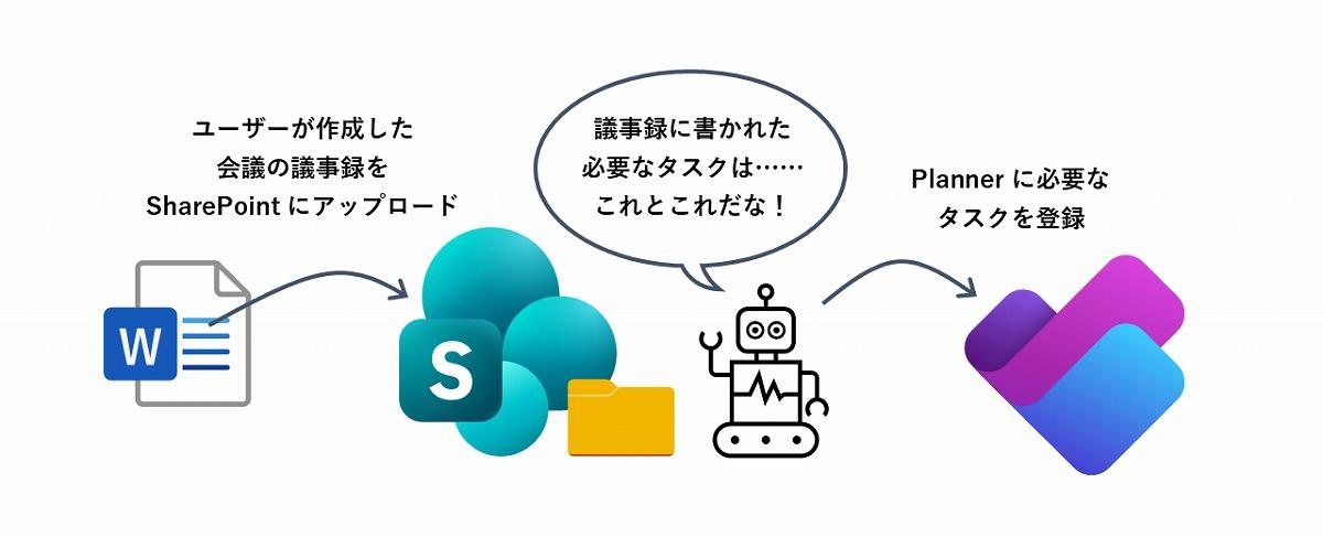たとえば、プロジェクト会議の議事録を作成する場面を思い浮かべてみましょう。「会議で決まったアクションアイテムは議事録に残すだけでなく、タスク共有や進ちょく管理のためにMicrosoft Plannerにも登録する」。こうした運用も考えられます。問題は、ここに「二重入力」が生まれることです。議事録に書いた内容を、もう一度タスクに整理し、タスク名を付けて、担当や期限を設定し、Plannerに入力する。地味ですが、確実に時間を取られます。そして忙しいと後回しになり、結果としてタスク登録も遅れがちになるかもしれません。