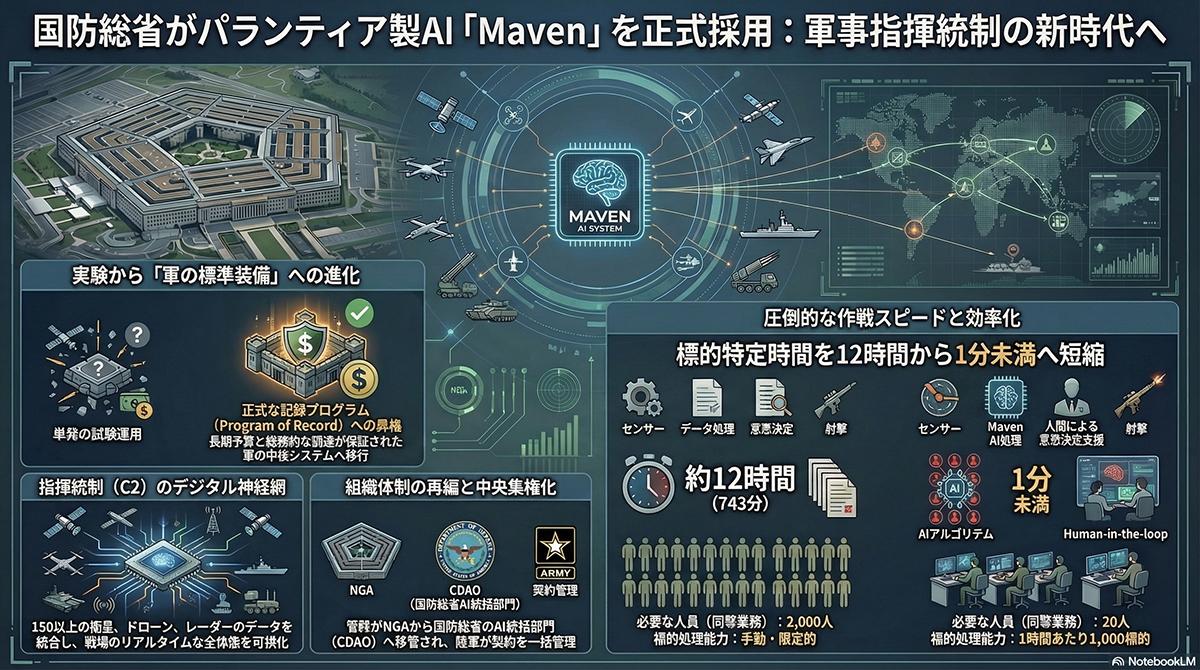 米国防総省がパランティアのAI「Maven」を指揮統制に正式採用