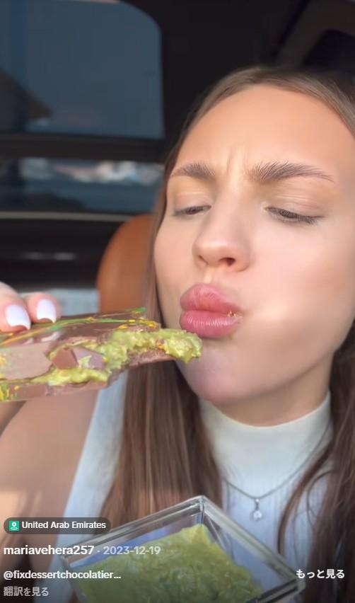 ドバイのインフルエンサー、Mariaveheraさんが2023年12月に投稿したドバイチョコをザクザクと食べる動画は、またたく間に拡散。現時点で780万もの「いいね」がついている。各国のインフルエンサーもこれに続き、日本を含め世界的に人気が広がっていった。