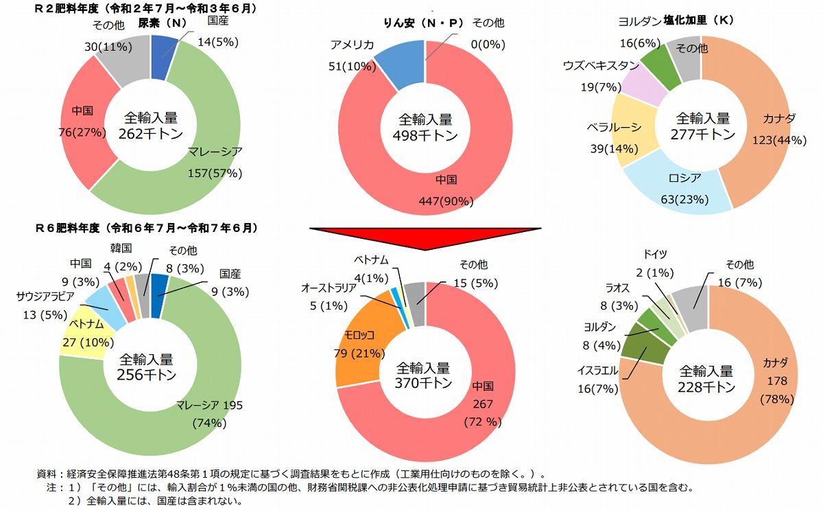 肥料には作物の生育に欠かせない3要素として、窒素、リン酸、カリ(カリウム)がある。花や実を結ぶのに必要なリン酸を、日本は主に中国とモロッコから調達している。