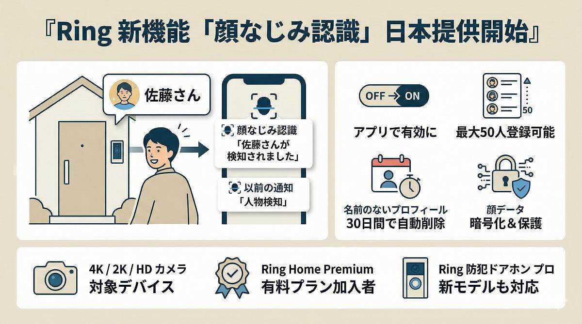 アマゾンのホームセキュリティ「Ring」、顔なじみ認識機能を日本で提供開始