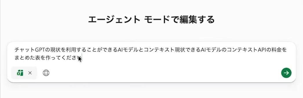 標準モードが「情報の検索と回答」に特化しているのに対し、エージェントモードは「シート上のセルに対する直接的な書き込みと操作」に特化しています。この切り替えこそが、AIを「実行者」として定義する第1歩となります。