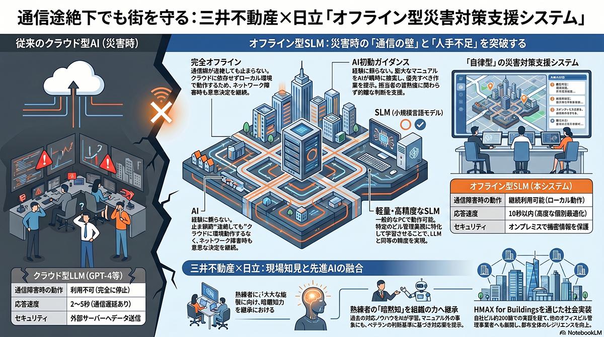 三井不動産と日立、通信障害時もSLMで駆動するAI災害対策支援システム開発