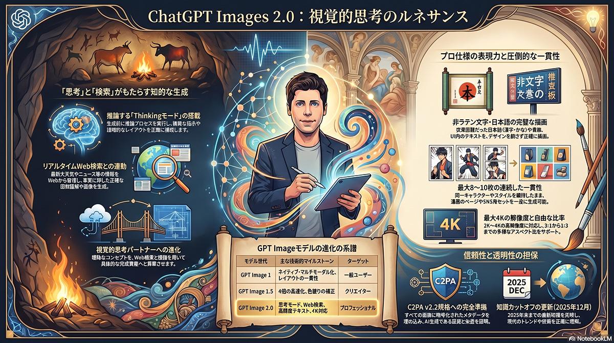 サム・アルトマンCEOは発表のライブ配信において、本モデルへの進化をGPT-3からGPT-5への飛躍に相当すると説明した。高度な思考機能を用いた生成は、ChatGPT Plus、Pro、Businessの各プランのユーザー向けに提供される。さらに出力画像には、AI生成物であることを示すC2PA規格のコンテンツ認証情報が自動的に付与され、各種規制に向けた透明性の確保にも対応している。