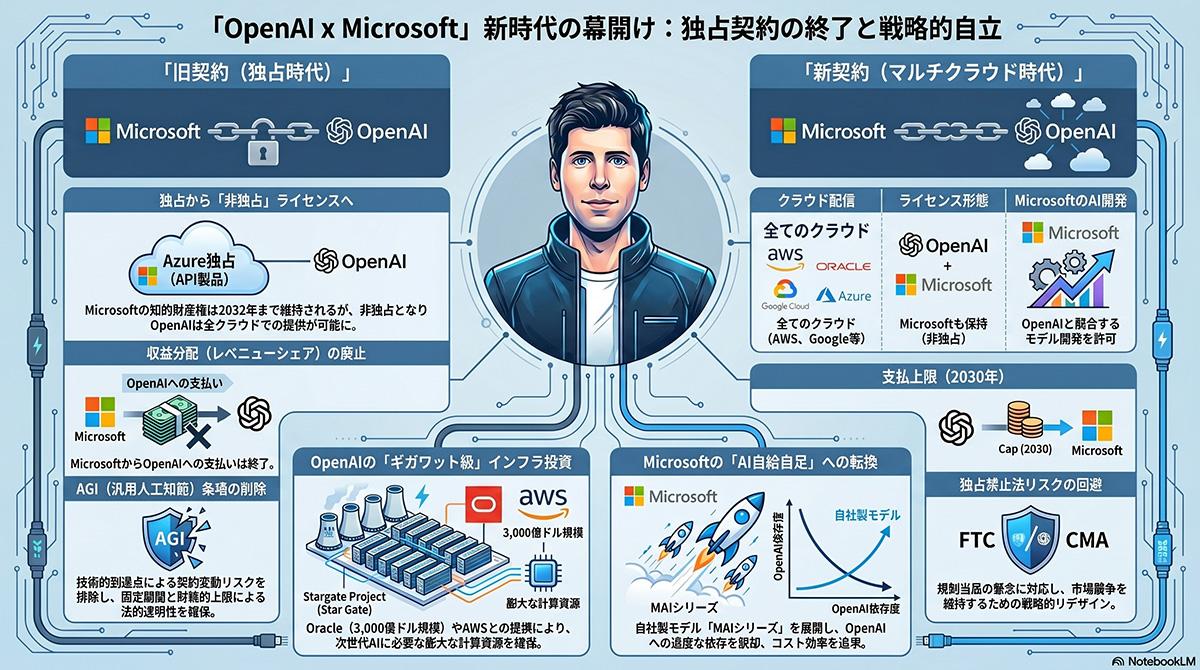 両社は従来の強固な資本提携の枠組みを維持しつつも、クラウドインフラ市場およびAIモデル開発競争において、それぞれが自立して事業を拡大する権利を確保した形となる。