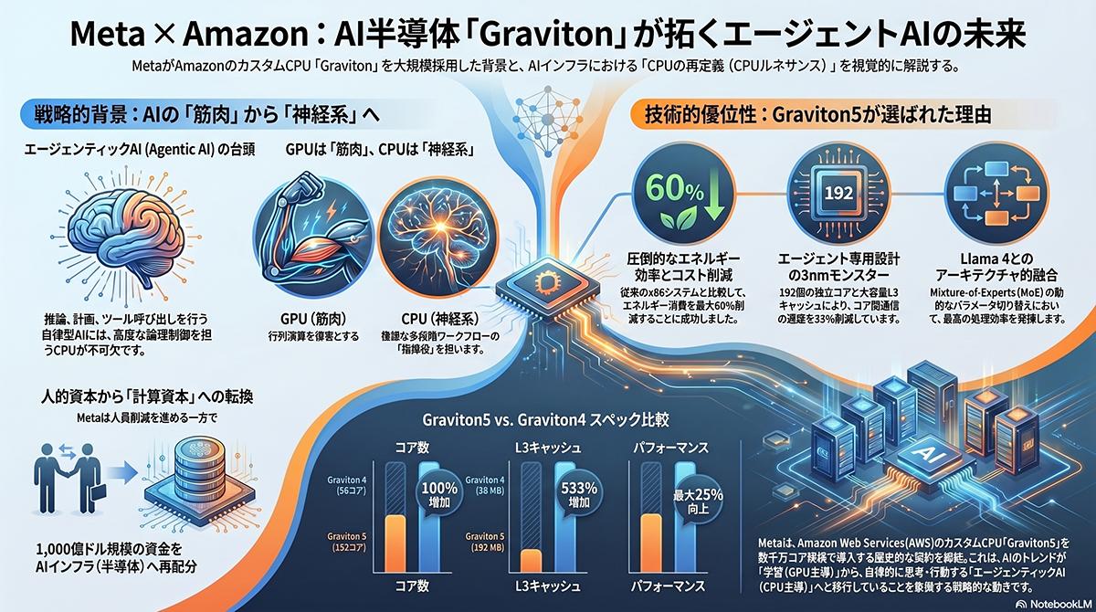 MetaがAmazonのAI半導体「Graviton」を大規模導入、エージェンティックAI基盤を強化