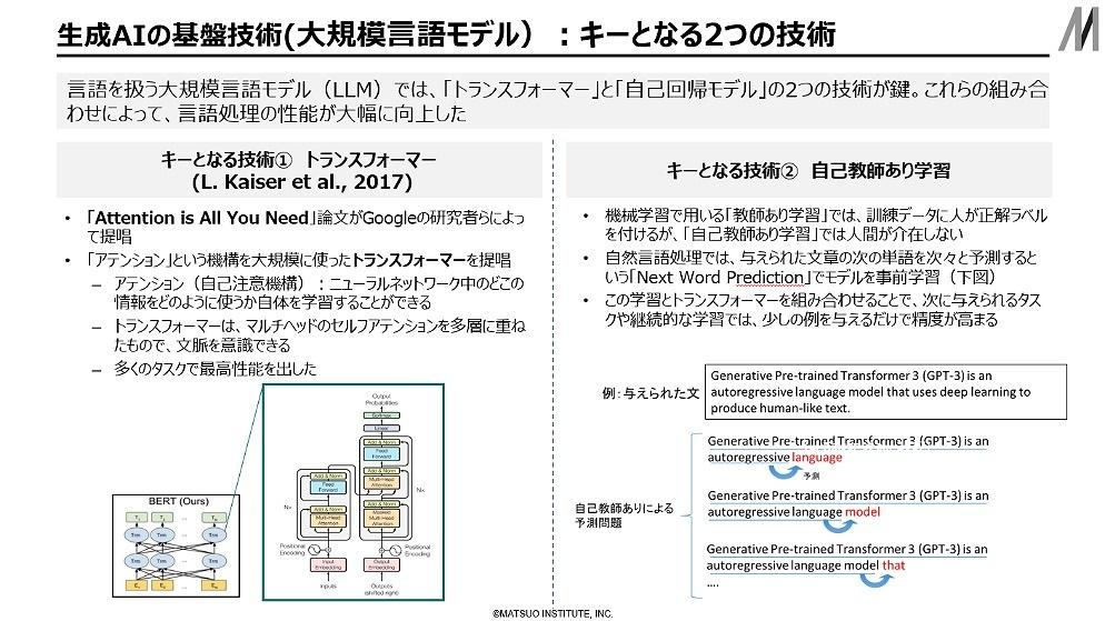 実は十分な学習量のある分野においては生成AIの基盤技術であるトランスフォーマー(図1参照)が上手く構築できるが、学習量が足りないと構築できないのだ。