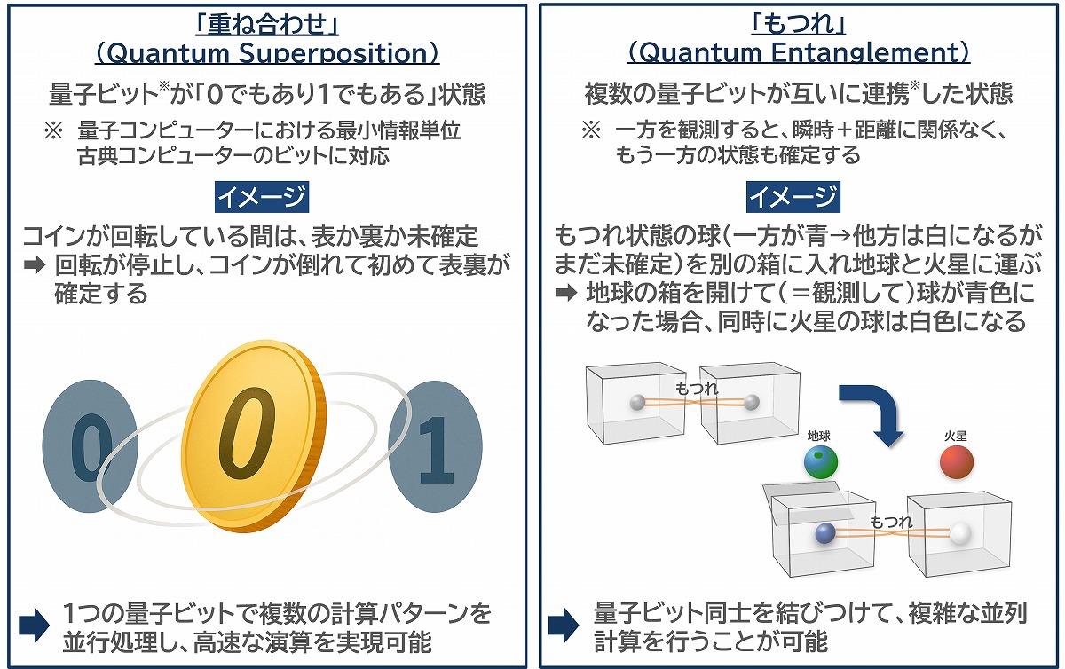 量子コンピューターは世界中で開発競争が進められており、国内でもさまざまなプレーヤーによる取り組みが行われている。たとえば、2025年6月、理化学研究所とIBMが156量子ビットの超電導方式量子コンピューター「IBM Quantum System Two」を神戸で稼働させ、スーパーコンピューター「富岳」との連携を開始した。量子コンピューターは「重ね合わせ」「もつれ」といった量子力学特有の性質を利用する新しい計算機であり、従来の古典コンピューターでは指数的に膨れ上がる計算を高速に処理できる可能性がある。