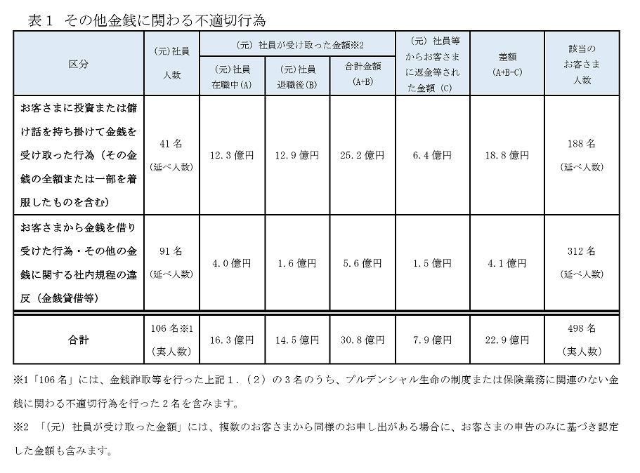 プルデンシャル生命は、顧客調査の結果として、社員および元社員による不正行為の実態を公表した。あわせてトップの引責辞任も発表され、この一連の対応は大きな反響を呼んだ。同社は改めて顧客に対する陳謝のコメントを発表するとともに、記者会見を行って被害者に対する補償にも取り組むことを表明している。