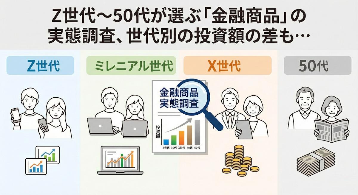 【金融機関必見】Z世代~50代が選ぶ「金融商品」の実態調査、世代別の投資額の差も…