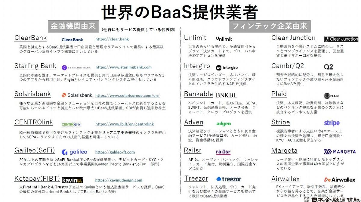 世界BaaSの構造と銀行由来BaaSの実際