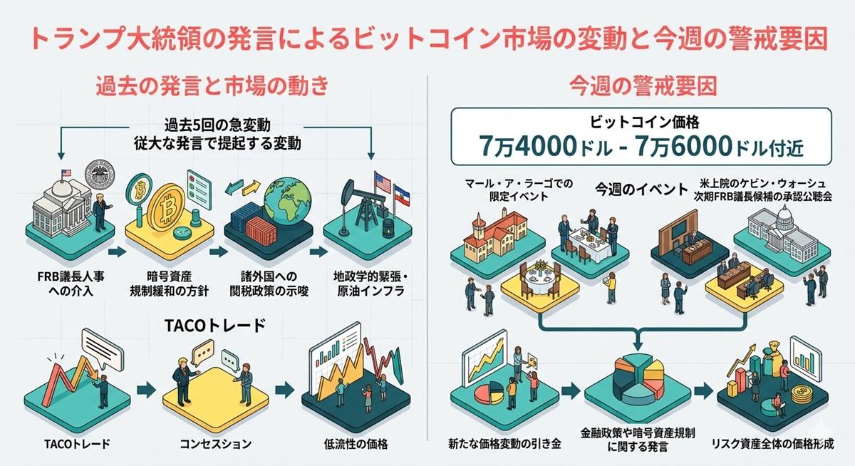 トランプ大統領の発言によるビットコイン市場の変動と今週の警戒要因