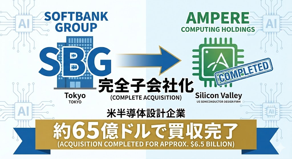 今回の完全子会社化は、SBGによるAIインフラ構築戦略の一環と位置づけられる。過去には英国のAI半導体企業Graphcoreの買収なども行っており、Ampereの技術を活用したAI/クラウド向け半導体の設計開発体制をさらに強化する狙いがある