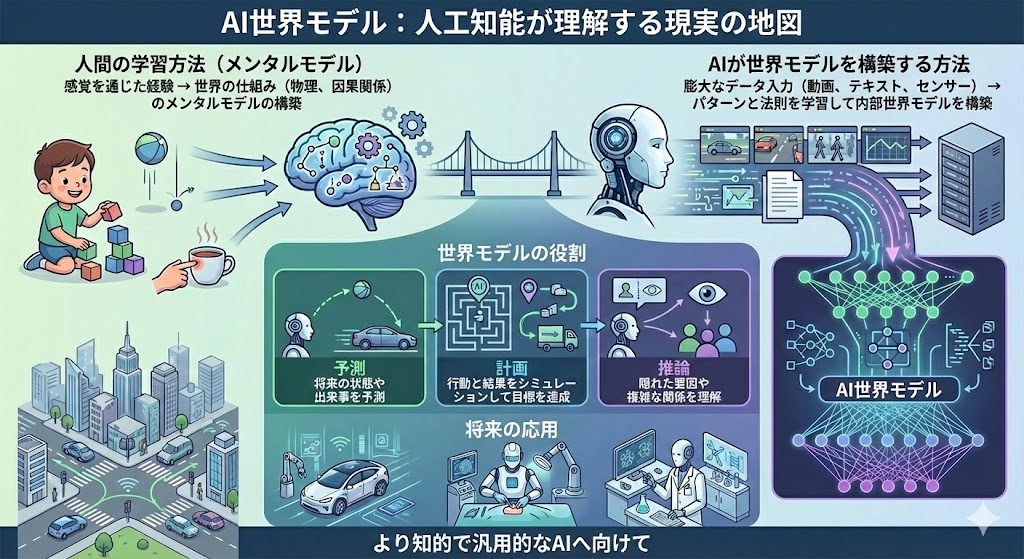 そのため、ルカン氏は今後のAI研究の主流を「世界モデル(world models)」に置くべきだと主張する。具体的には、視覚や映像など多様な感覚入力を通じて「この世界がどうなるか」を予測・理解できるAI、すなわち彼が提唱するアーキテクチャ JEPA(Joint Embedding Predictive Architecture)などを活用し、因果関係や物理法則、環境への行動と反応をモデル化できるシステムを目指すべきだという。