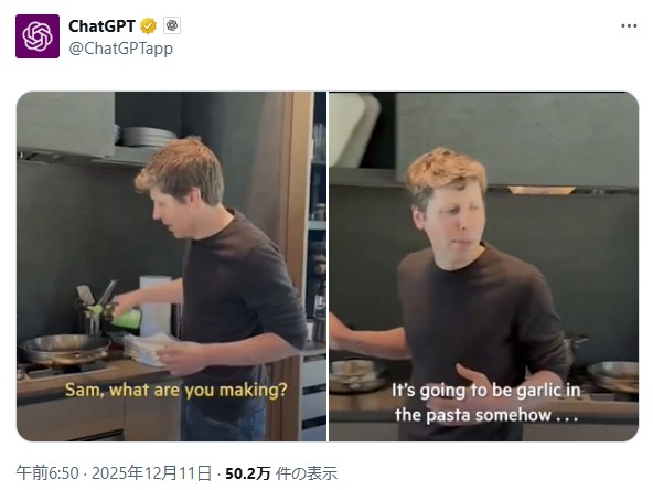 OpenAIのChatGPT公式アカウントはサム・アルトマン氏とみられる人物がニンニクを料理する「匂わせ投稿」をポストした。複数メディアでは、これはOpenAIが内部で開発中とされる新たな高性能モデルのコードネーム、あるいはGPT-5.2の開発段階でのプロジェクト名「Garlic」のリリースを匂わせる投稿であるとされている。これにより、「GPT-5.2」が単なるバージョン番号としてではなく、Garlicという新機構やアーキテクチャ改良を伴うモデル要素を含む可能性が取りざたされているが、OpenAIからの公式な発表はまだない。